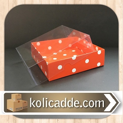 Puanlı Kırmızı Karton Kutu Üstü Asetat Kapak 10x10x4 cm