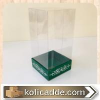 Yeşil Karton Üzerine Gümüş Saray Desenli Üstü Kısım Komple Şeffaf Asetat Kutu 8x8x12 cm